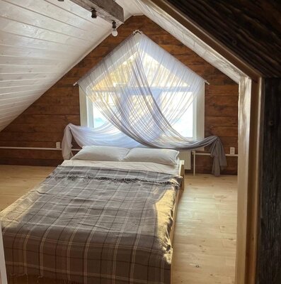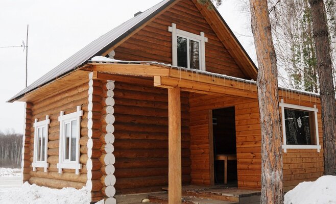 Деревянный дом из массива кедра на самом берегу реки с комфортом разместит 6-8 человек