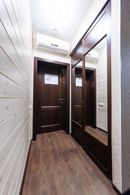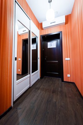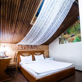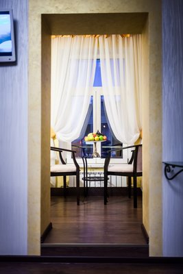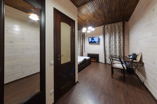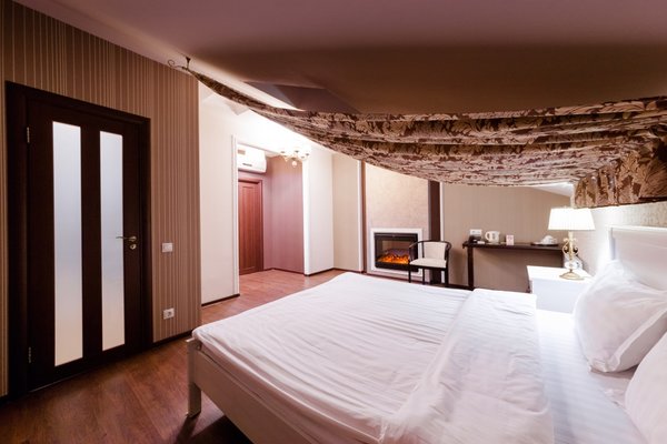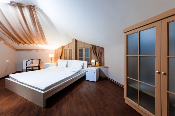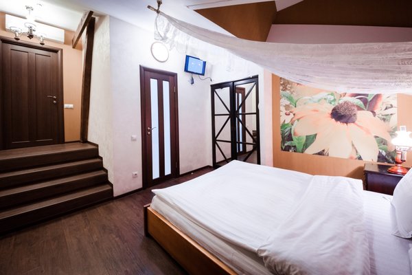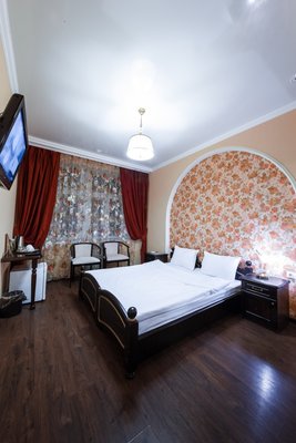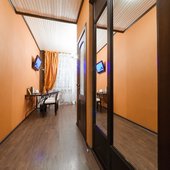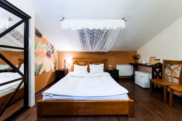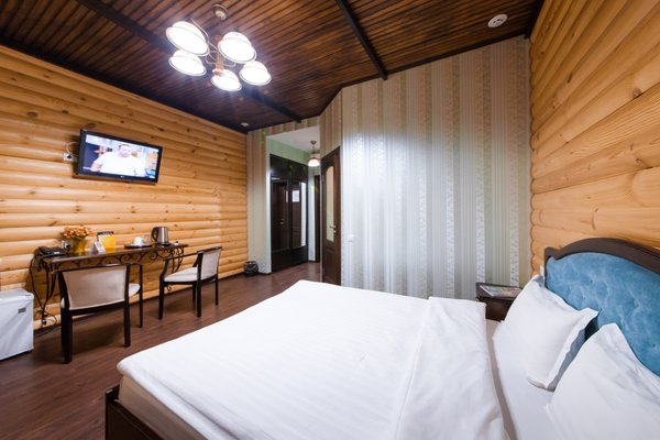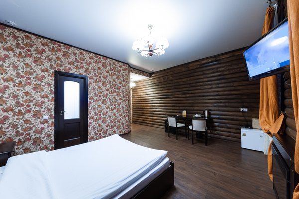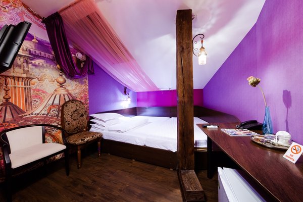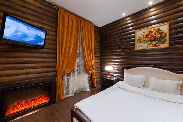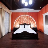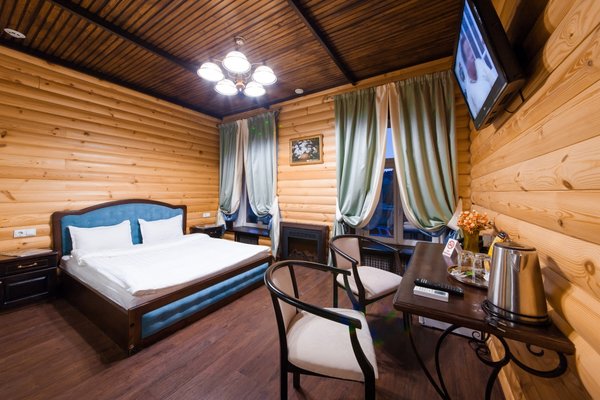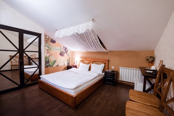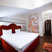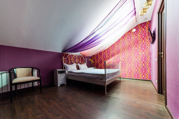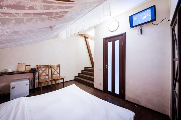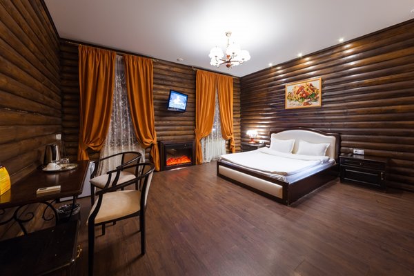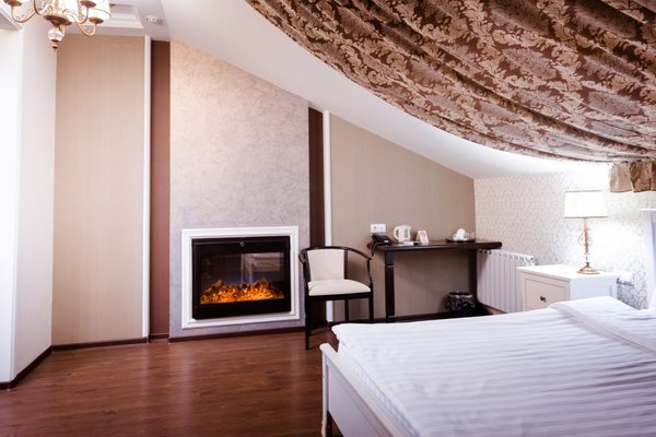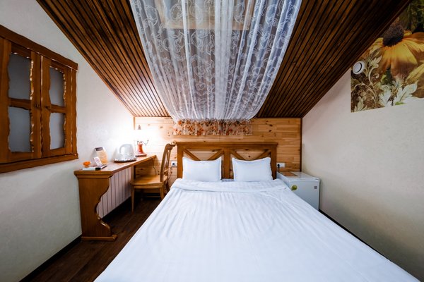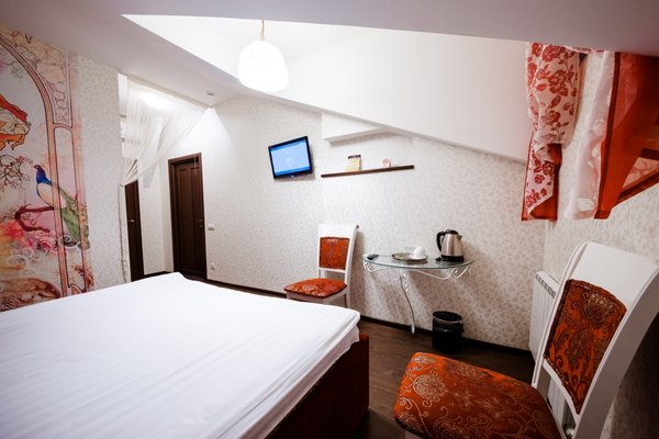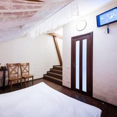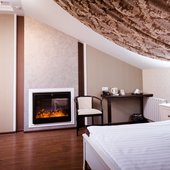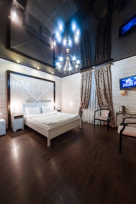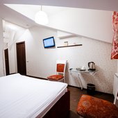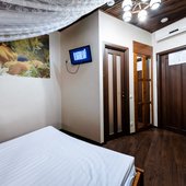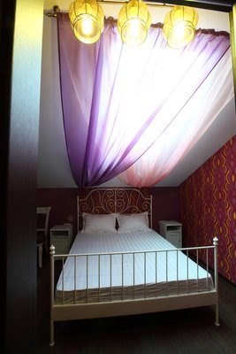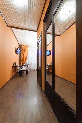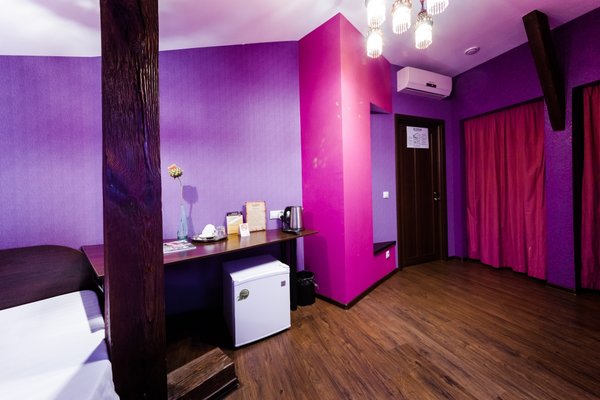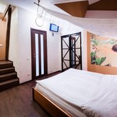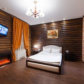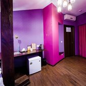 Интересный интерьер. В номерах есть все необходимое, и даже мини бар))