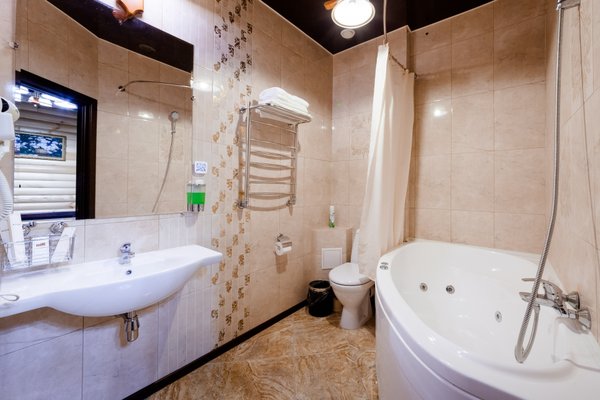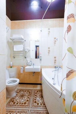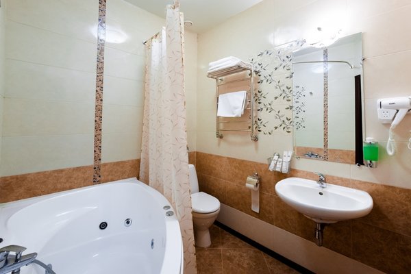 В целом все неплохо. Номер достойный, даже джакузи имеется) Есть всевозможные гигиенические принадлежности, фен и т.д.
