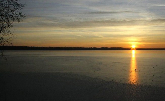 В прогулочном темпе можно от берега до берега пройти за час. Да и куда торопится, тишина, вокруг сосны, прозрачная вода, видно окуней.