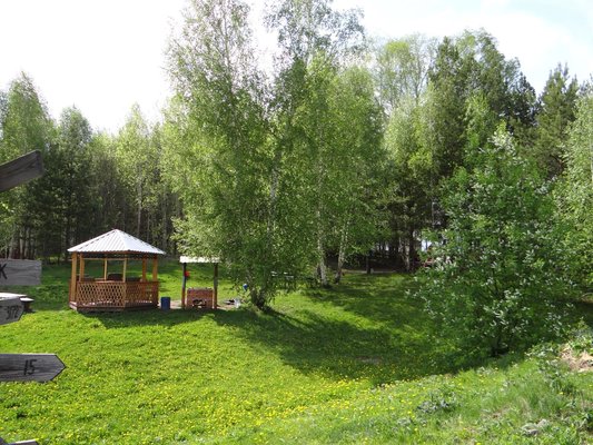 На прилегающей территории: крытый мангал, места для казана, казан, дрова, вода, спортплощадка, парковка.