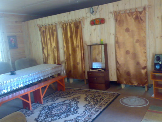 Баня вместимостью 6 человек. Отдыхающие могут комфортно расположиться в местечке для отдыха, парилка, музыка, простыни, веники.