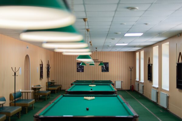 Разнообразные спортивные возможности представлены современным спортивным комплексом с тренажерным залом, уличными площадками, баней с купелью и бильярдным залом. Организация спортивных сборов возможна за дополнительную плату.