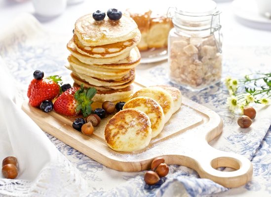 Банкетный зал ресторана выполнен в нежных оттенках голубого и синего, дополняемых белыми и блекло-золотыми акцентами. В этом уютном пространстве, вмещающем до 40 гостей, начинается день с вкусных и сытных завтраков.