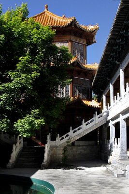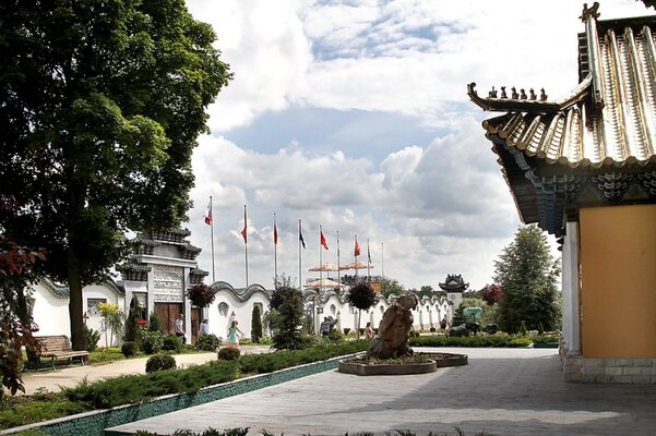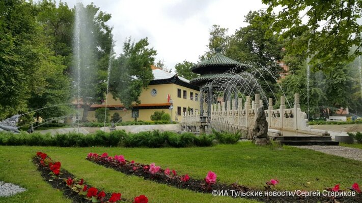 Чайный дом необыкновенно красив. У него есть отдельный вход. В него можно попасть по каменному мостику, переброшенному через пруд с фонтаном и золотыми рыбками.