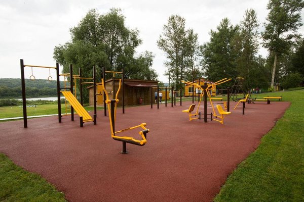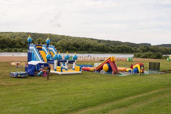 Большая территория, широкий пляж, две речки Ока и Вашана, хороший персонал, приличные домики.