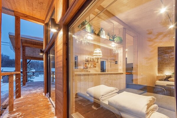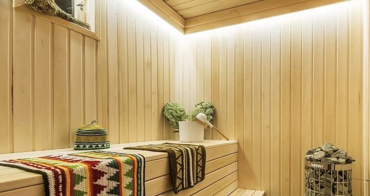 У каждого коттеджа имеется собственная сауна. В саунах находится помещение для переодевания со столиком для чайных церемоний и душевой кабиной, а также парильное отделение с электрокаменной печью НАRVIA.