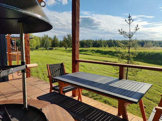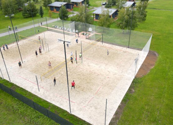 На территории комплекса имеются: зона барбекю для приятного времяпрепровождения, спортивные площадки для активного отдыха, беседка для уединенных посиделок и водоём с оборудованным песчаным пляжем для купания и загара