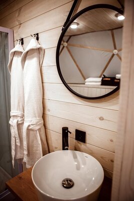Фурако — это подогреваемая купель в виде бочки. При бронировании Сферы индивидуальная горячая купель включена в стоимость проживания.