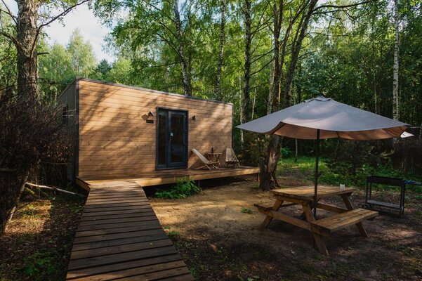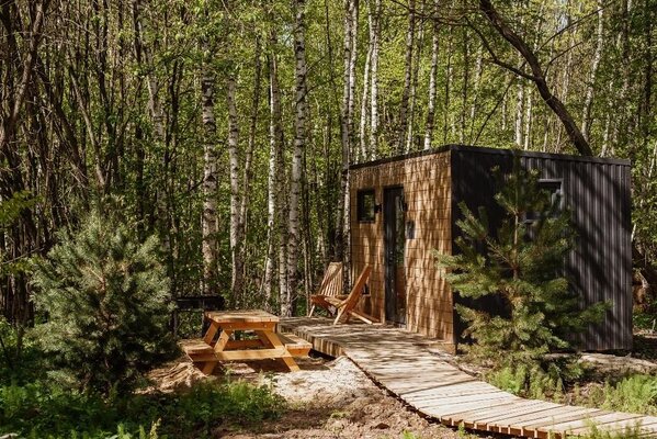 Отдохните от городской суеты в глэмпинге «Терруар». На границе Московской и Тульской областей вас ждут уютные скандинавские домики в окружении живописной природы. Каждый домик оснащен всем необходимым для комфортного проживания: спальней, гостиной, кухней и ванной комнатой, а также имеет собственную зону для барбекю. Активным гостям предлагаются квадроциклы, лыжи, снегоходы и джип-туры. А для тех, кто предпочитает расслабление — баня, чан, кинопросмотр и игры. Мы также организуем профессиональные фотосессии, чтобы запечатлеть ваши лучшие моменты!