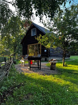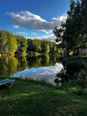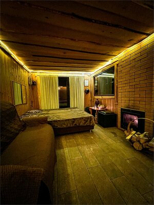 Вдоль берега лесного озера для Вас обустроены не только зоны гамаков, шезлонгов, скамеек с видом на окружающую природу, но и уютная тёплая беседка с камином, BBQ принадлежностями, TV с плоским экраном и спутниковым телевидением.