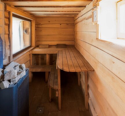 - возможность насладиться парными процедурами в дровяной бане около озера, ощущая неподдельное русское наследие;