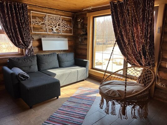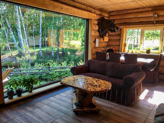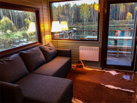 В бане есть все удобства: комната отдыха с панорамным окном и видом на лес и озеро, внутренний дворик, ванная комната с без барьерной душевой, санузел.