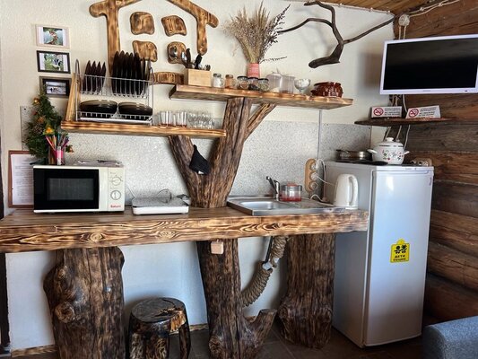 В каждом домике Вы найдёте набор деревенских продуктов: сливочное масло, яйца, варенье, а также крупы, которые пригодятся Вам для приготовления вкусного и здорового завтрака. Вы без труда сможете: