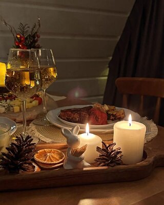 Наслаждайтесь приготовлением шашлыков на специально оборудованной площадке под звездным небом, используя предоставленные нами чай, кофе и специи. Для активного отдыха — прогулки по лесу (грибы, ягоды), рыбалка на озере. Стильный интерьер домика станет отличным фоном для ваших фотографий.