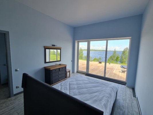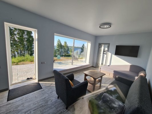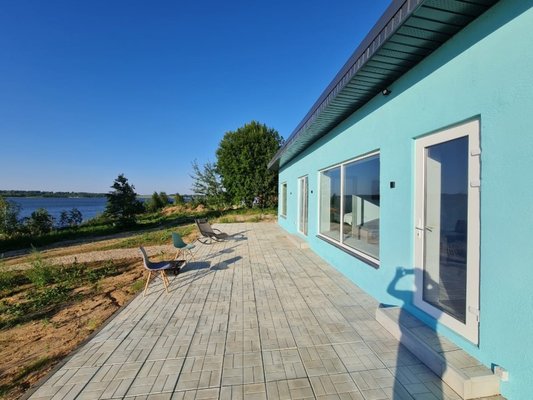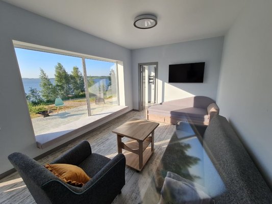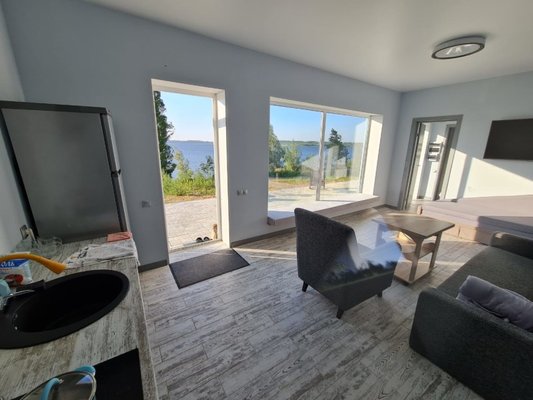 Особенностью дизайнерского стиля зданий являются большие панорамные окна с видом на воду. Здесь гости могут наслаждаться комфортным отдыхом в частном пляже, сауне и русской бане, а также на нескончаемых водных просторах — это настоящий премиальный отдых в самом сердце Вазузы!