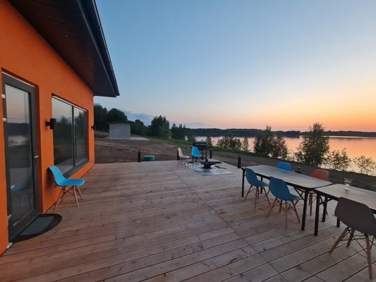 Всегда есть возможность забронировать уютные домики на берегу «SLEEP-HOUSE», а также шале с саунами, из которых открывается великолепный панорамный вид на водохранилище, а выход из сауны ведет прямо к водоему.