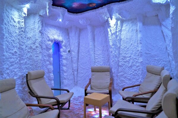 Длительность сеанса 35 минут. Вместимость соляной пещеры — 6 человек.