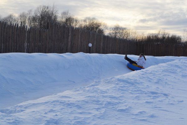 В прокате есть тюбинги, на которых взрослые и дети с удовольствием катаются с горок. А на волейбольной площадке устраивают активные командные состязания.