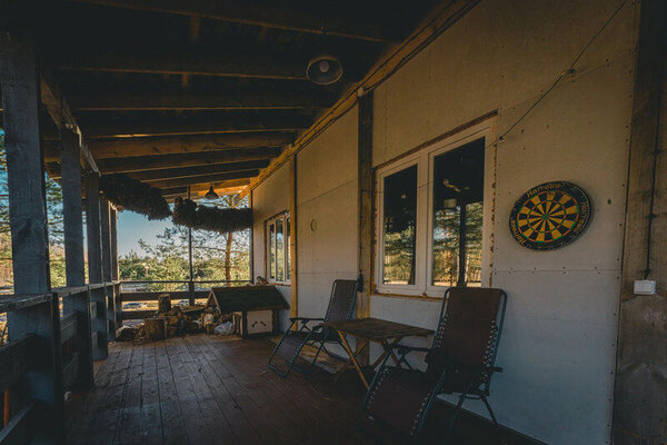 База располагается на территории в 5 гектаров, которая ухожена, освещена и охраняется для безопасности гостей. Здесь есть контактный зоопарк с ручными животными, библиотека, баня, рыбалка, прокат лодок, спортивная площадка, грибы и ягоды, беседки, кинотеатр под открытым небом, костры и многое другое. Практически все развлечения подходят для детей, и также имеется детская площадка.