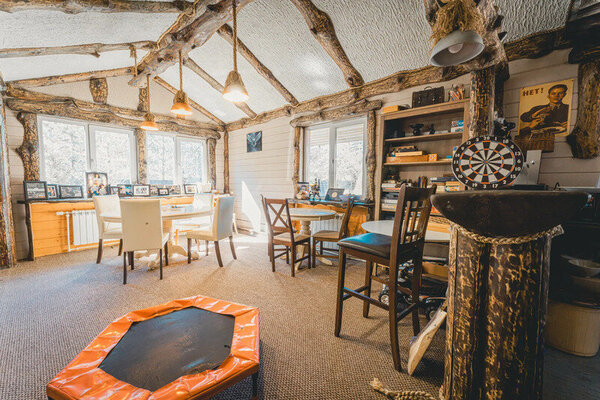 Для гостей базы отдыха открыт ресторан. Здесь можно посидеть у камина с чашечкой кофе или чая, поиграть в настольные игры. А для детей есть комната Лего, где они смогут провести время и собрать свои не повторимые подделки.