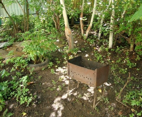Вы можете приготовить еду на свежем воздухе. Есть все необходимое — мангал, котелок для ухи с решеткой, коптильня, стол со скамейками.