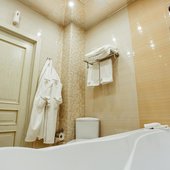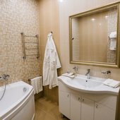 О сохранности ценных вещей позаботятся сейфы. Вы найдете мини-бар с ассортиментом напитков. В ванной комнате будут все необходимые средства личной гигиены, тапочки, фен. В обеденной зоне - кухонная утварь, электрический чайник и стол.
