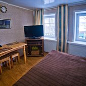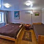 Номера представлены в категории "стандарт" и рассчитаны на проживание 3-4 человек. В комнатах выполнен классический ремонт в спокойной цветовой гамме, есть мебель, техника и удобства.