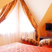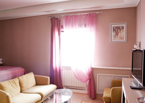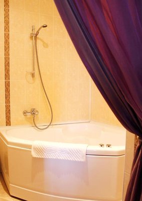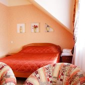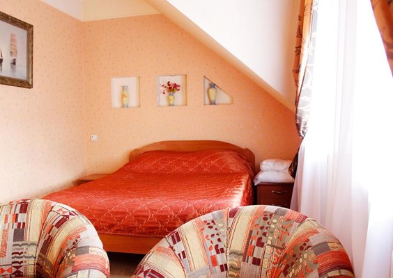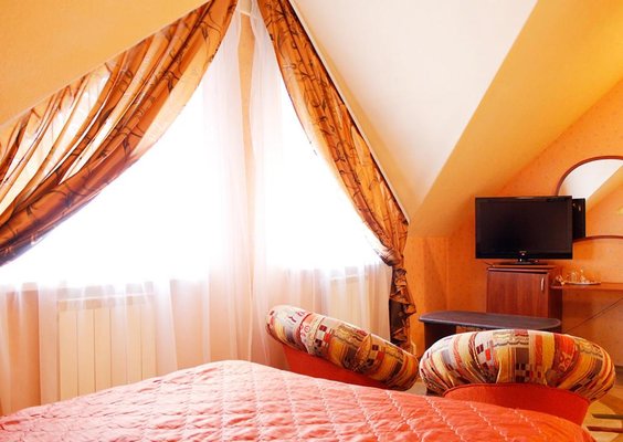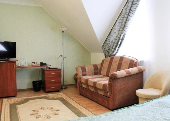 Светлые номера оформлены в классическом стиле, в каждом из них есть все необходимое, что может понадобиться во время отдыха, в ванной комнате есть мягкий халат.