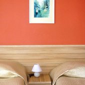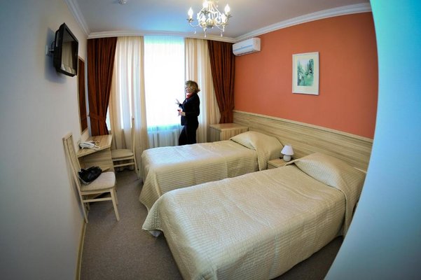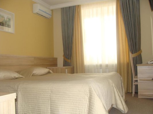 Достаточно комфортабельные номера выполнены в светлых классических тонах. В ванной комнате есть все средства для личной гигиены, набор полотенец.