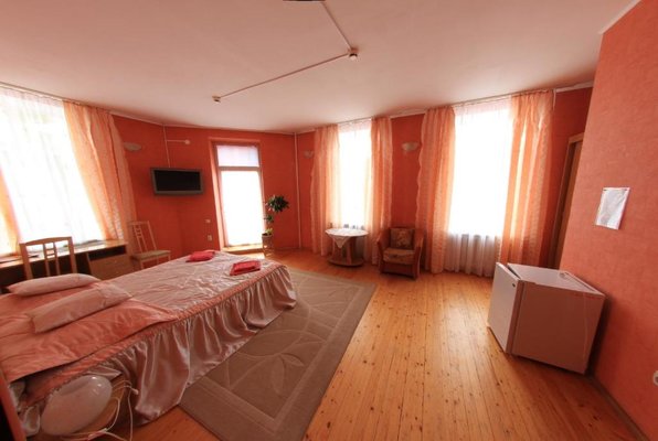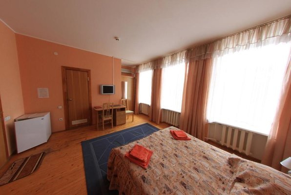 Интерьер выполнен в классическом и красивом стиле. Заселяться можно как одному, так и нескольким людям, разрешено приезжать с детьми. Все номера оборудованы необходимой мебелью и техникой. Приём и регистрация гостей ведётся круглосуточно. По желанию вы можете посетить салон красоты или парикмахерскую, которые находятся здесь же.