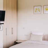 Проживание с домашними животными: до 10 кг — 300 руб./сутки, от 10 до 20 кг — 400 руб./сутки, от 20 до 30 кг — 500 руб./сутки.