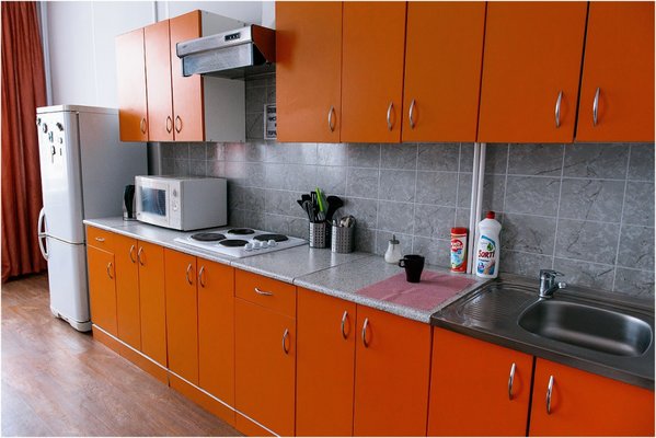 Приготовить или разогреть еды вы сможете на общей кухне, которая оборудована современной бытовой техникой, кухонными принадлежностями и посудой.