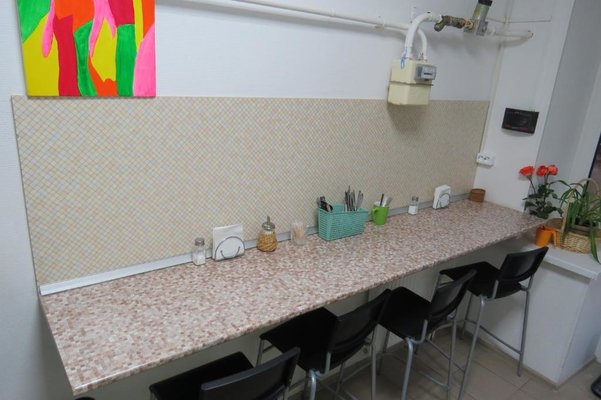 Приготовить еду отдыхающие смогут на общей кухне, в числе удобств: кухонные принадлежности, микроволновая печь, чайник, плита, холодильник и стиральная машина. Поблизости работают различные магазины, кафе и бары.