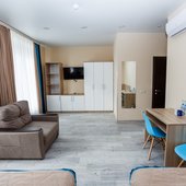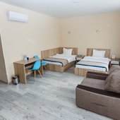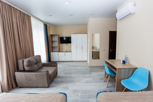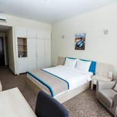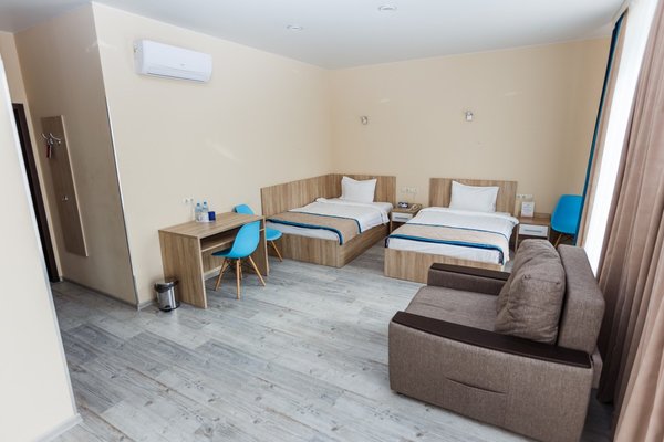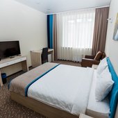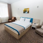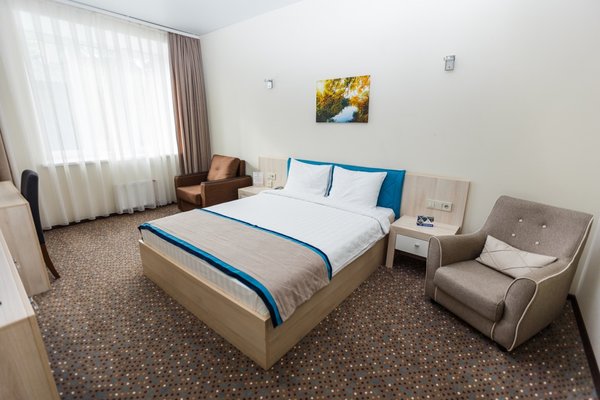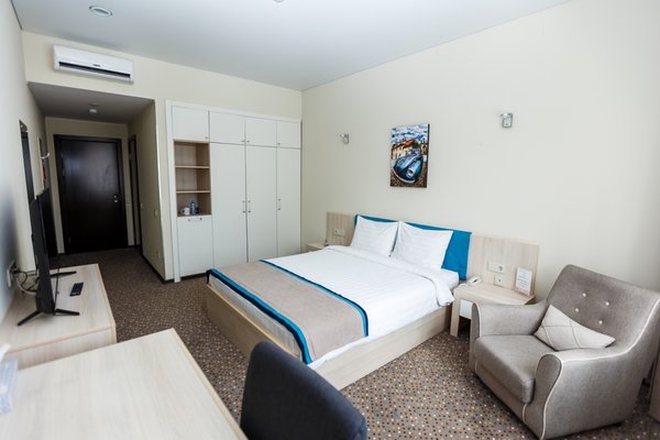 К услугам гостей комфортабельные номера, каждый из которых выполнен в строгом классическом стиле и оснащен качественной мебелью, набором техники, а также собственном ванной комнатой, в которой предоставляются бесплатные средства гигиены. В каждом есть кондиционер, сейф, телевизор, телефон с междугородней связью. На территории работает беспроводной доступ к сети Wi-Fi.