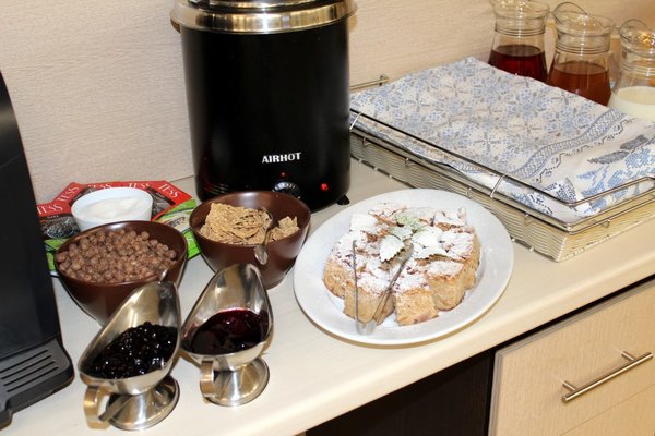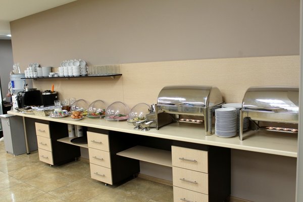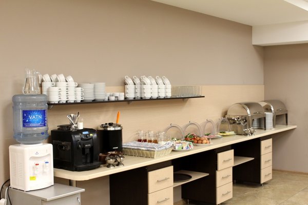 Питание организуется в собственном ресторане, где представлен широкий ассортимент блюд и напитков. По утрам в отеле сервируется завтрак. Рядом с гостиницей можно посетить супермаркеты "Торты и Пирожные", "Дикси" и "Волжский Пекарь", а также "Burger Bar KOTLETA".
