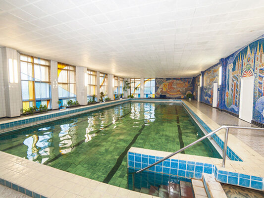 Плавательный бассейн расположен на первом этаже курортной поликлиники. Инструктор ЛФК в бассейне проводит: