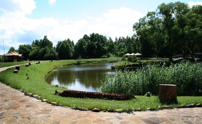 В зооуголке обитают удивительные питомцы: леопард по имени Олимпиада, лошади и пони, павлины и фазаны, а также пятнистые олени и элегантные лебеди.