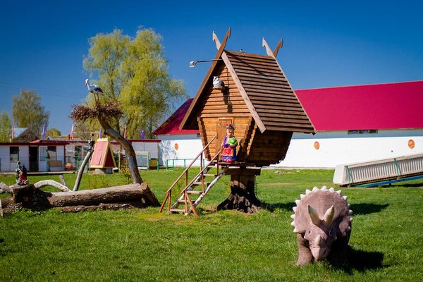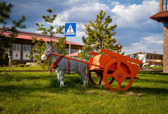 Гостиница предлагает различные категории комфортабельных номеров, начиная от общих и заканчивая люксами на 6 гостей. На территории имеются конюшни и ипподром, места для гриль-вечеров и барбекю, спортивные и игровые площадки, а также теннисный корт. Для развлечений зимой предусмотрены горки, русская баня, сауна и возможность массажа. Предлагается экскурсия в музей лошади и посещение антикварного магазина. Для любителей активных игр доступна бильярдная и настольный футбол.