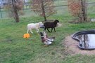 В зоопарке есть павлины, с гордостью демонстрирующие свои украшенные «глазками» хвосты, фазаны, «говорливые» куры во главе с петухом, кролики, овцы и козлики.