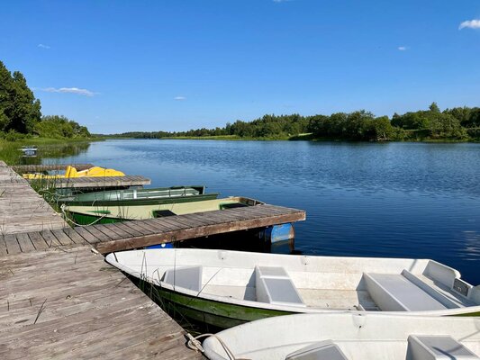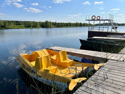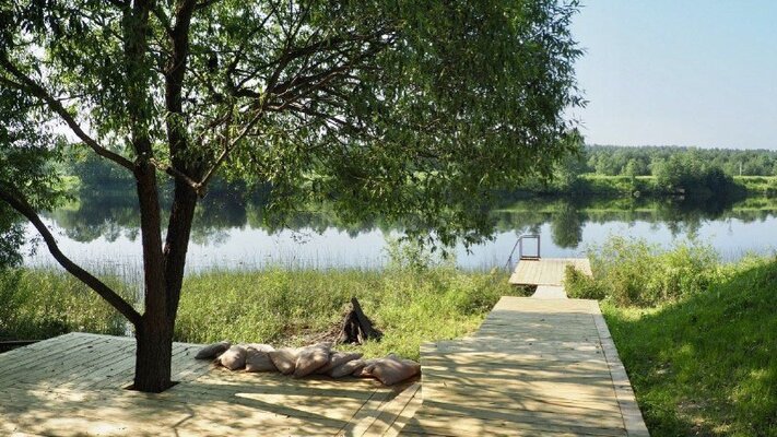 Домики находятся на берегу реки или в березовой роще, вдали от суеты. Река Медведица — одна из самых чистых в регионе, без заводов и фабрик. Рыбалка, прогулки на лодках и сапах, детская площадка, волейбольная площадка, большой батут, плавучая беседка.