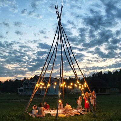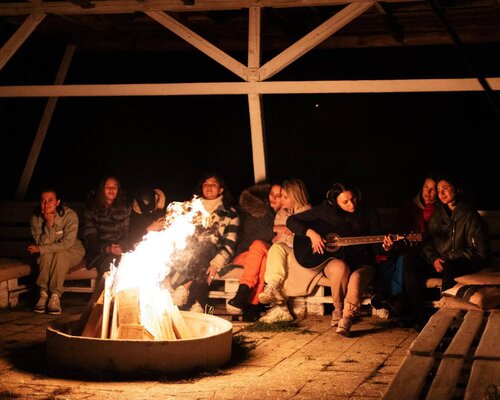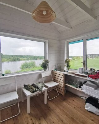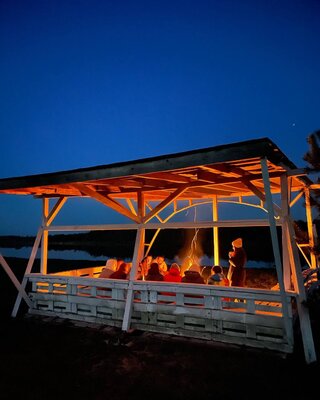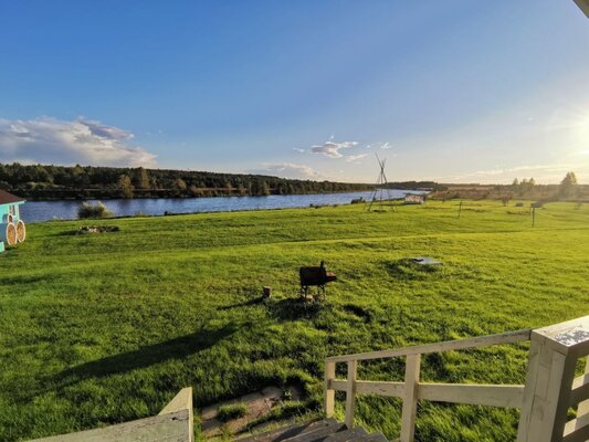 Уютная беседка прямо на берегу реки. Комфортно проводить практики знакомства, общаясь за чашкой чая вокруг огня