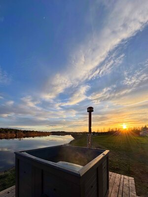 Банька для ценителей качественного пара и отдыха на природе. Чугунная печь атмосфера массой 340кг вместе с каменной закладкой выдаст достаточное количество доброго пара для компании до 6 человек. Возможность прыгнуть в воду после процедур подарит вам особенные эмоции. Банный чан с лечебной торфяной водой придаст тонус коже и всему организму. Будет тепло и уютно, приезжайте.