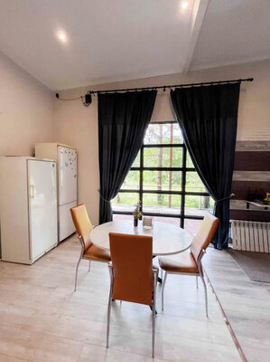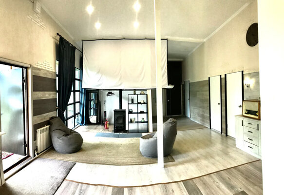 Дом вмещает до шести человек и оснащен всем необходимым для комфортного проживания. Просторная кухня и обеденная зона позволяют с легкостью готовить и принимать гостей. Уютная гостиная с камином, проектором, Hi-Fi системой и виниловым проигрывателем создают атмосферу уюта и расслабления — здесь можно провести время за просмотром любимых фильмов или наслаждаться музыкой.