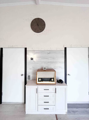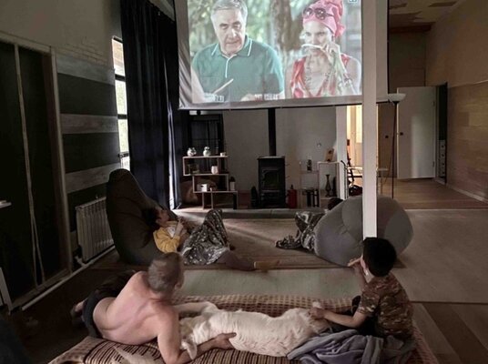«Мишкин дом» предлагает уютную гостиную с камином, проектором, Hi-Fi аппаратурой и виниловым проигрывателем — идеальное место, чтобы расслабиться в кругу семьи или друзей и насладиться кино или музыкой в домашней атмосфере.