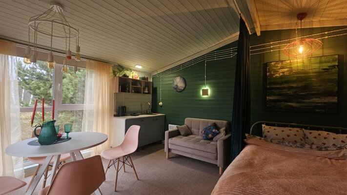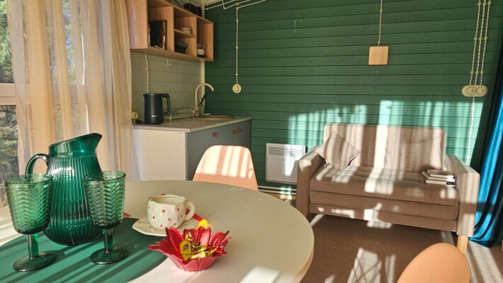 На территории базы отдыха вы найдете уютную зону отдыха со скамьями и столами, гамак для релаксации и мангал для барбекю. Побалуйте себя вкусными блюдами, приготовленными на открытом огне. Приезжайте в «Олин лес» и создайте незабываемые семейные воспоминания в окружении природы.