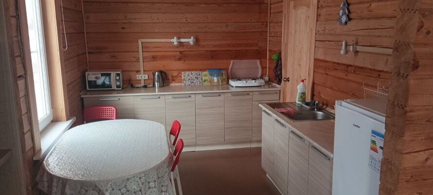 В доме для вас созданы все условия для комфортного отдыха: уютные комнаты, оборудованная кухня и, конечно же, настоящая русская баня с ароматным паром.