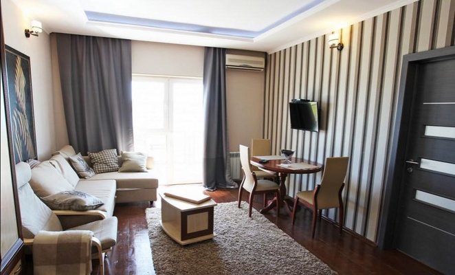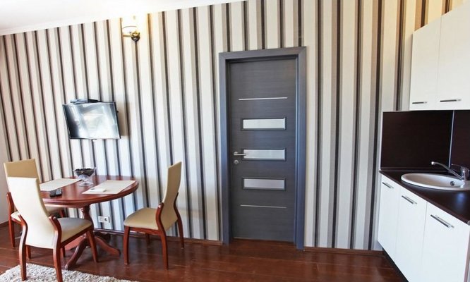 Гостиничный комплекс предоставляет большой выбор номеров разных классов, а также апартаменты и коттеджи, один из которых на воде. Каждое из жилых помещений отличается друг от друга цветовой гаммой и стилем. При этом, все они имеют вполне стандартное мебельное оснащение.