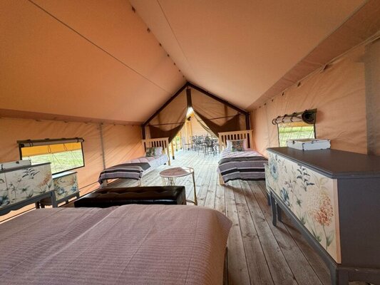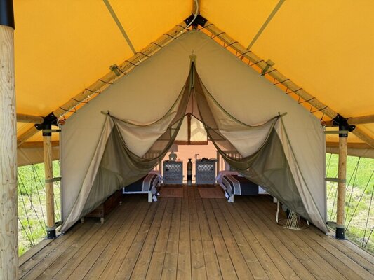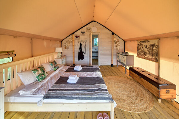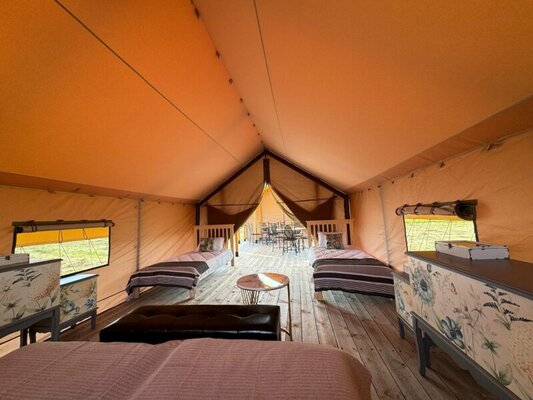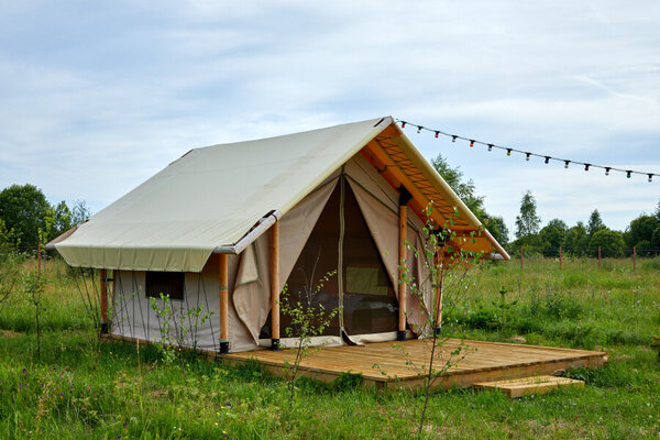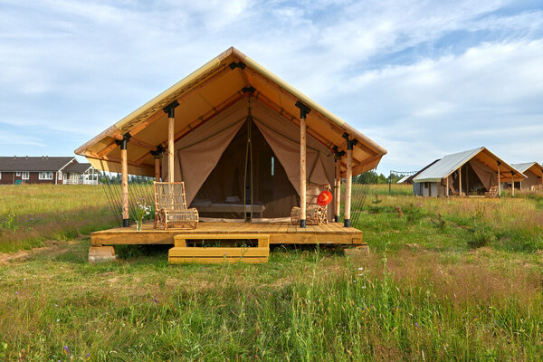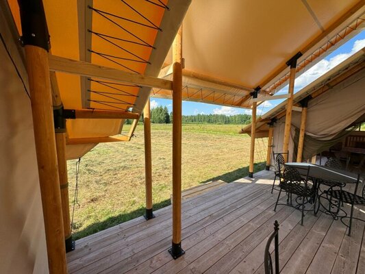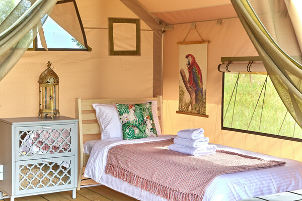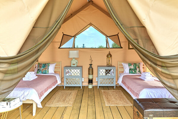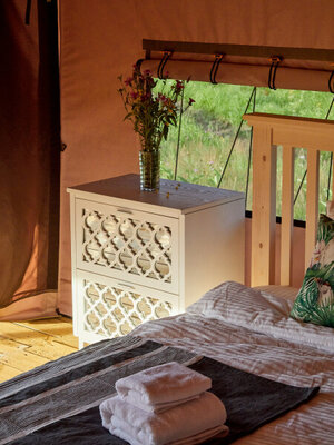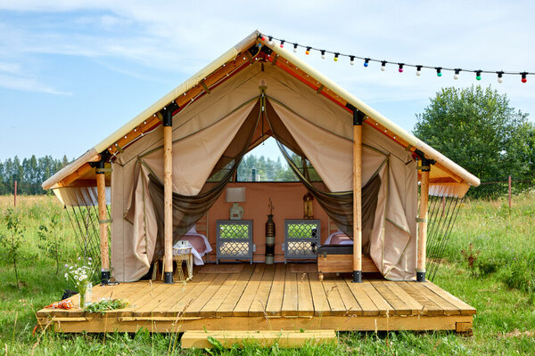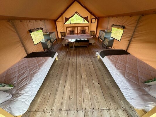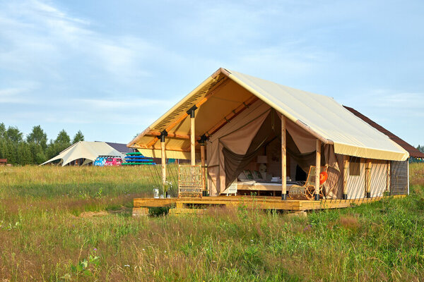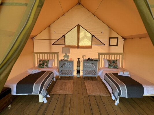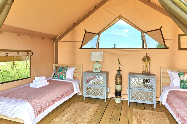 К вашим услугам — комфортабельные сафари-тенты, сочетающие близость к природе с необходимыми удобствами. Для максимального комфорта предусмотрены тенты с персональными ванными комнатами. Зимой можно выбрать уютные номера с кухней, душем и туалетом.