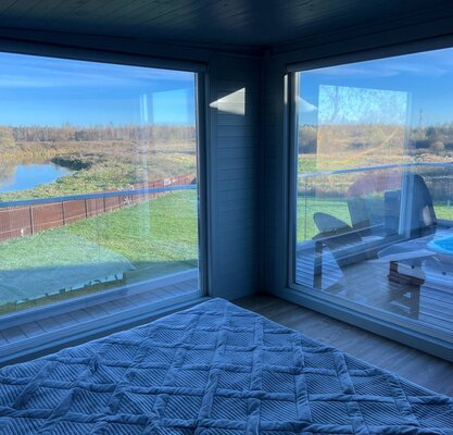 Дом уютно расположился в живописной местности с чарующим панорамным видом на реку, создавая поистине умиротворяющую и уединенную атмосферу. Вдали от городской суеты вы сможете насладиться целительным воздухом, провести время с близкими и погрузиться в гармонию с природой.